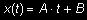 In deze algemene formule staat x(t) voor de plaats (in m) op een willekeurig tijdstip t (in s). De constante A staat voor de richtingscoëfficiënt van het (x,t)-diagram. Aangezien deze richtingscoëfficiënt de (constante) snelheid voorstelt, zal deze in het vervolg met v worden aangeduid. De constante B staat voor het snijpunt van de grafieklijn met de verticale as (x-as). Aangezien dit snijpunt de positie van het bewegende voorwerp voorstelt op het tijdstip t = 0 s zal deze constante in het vervolg worden aangeduid met x(0). De plaatsfunctie voor een eenparige beweging wordt dan: