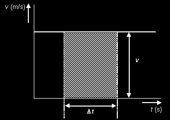 Bepaling van het oppervlak onder een (v,t)-diagram leidt tot de verplaatsing. In bovenstaand diagram is een gedeelte onder de grafielijn gearceerd. Het oppervlak van deze rechthoek kan berekend worden en leidt tot de verplaatsing in het aangegeven tijdsinterval Dt. Er geldt immers: