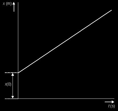 Het (x,t)-diagram van een eenparige beweging hoeft niet persé door de oorsprong te gaan. Niet iedere beweging start immers in een oorsprong (x = 0 m). Het bewegende voorwerp kan zich op het tijdstip t = 0 s ook op een andere positie bevinden, x(0). Door de richtingscoëfficiënt van een (x,t)-diagram te bepalen kan de snelheid berekend worden. Het algemene functievoorschrift dat bovenstaand (x,t)-diagram beschrijft, luidt: