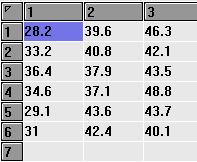 4.    In beeld verschijnt een spreadsheet (tabel). Hier kun je je meetwaarden invoeren. Zie nevenstaande figuur.