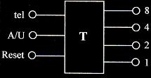 pulsenteller hebben de volgende werking: - Op de "Tel"-ingang van de pulsenteller kunnen de te tellen pulsen worden aangeboden. - Met behulp van de "Aan/Uit" (A/U)-ingang kan de teller worden in- en uitgeschakeld. Als er op de "Aan/Uit"-ingang een hoog (5 V) signaal wordt aangeboden staat de teller aan. Als er een laag (0 V) signaal wordt aangeboden op de "Aan/Uit"-ingang staat de teller uit. Als er geen aansluiting is de de "Aan/Uit"-ingang, dan staat de teller aan. - Als de "Reset"-ingang hoog wordt gemaakt, wordt de teller terug op nul gezet. - De ingangssignalen "8 4 2 1" staan voor de telwaarde van de teller, weergegeven in een binair getallenstelsel. |