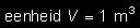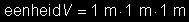Stel we willen ook de eenheid van volume (of inhoud) afleiden. Dan gaan we uit van een blokje met een bepaalde lengte (l), een breedte (b) en een hoogte (h). Het volume V kan dan berekend worden met de formule: